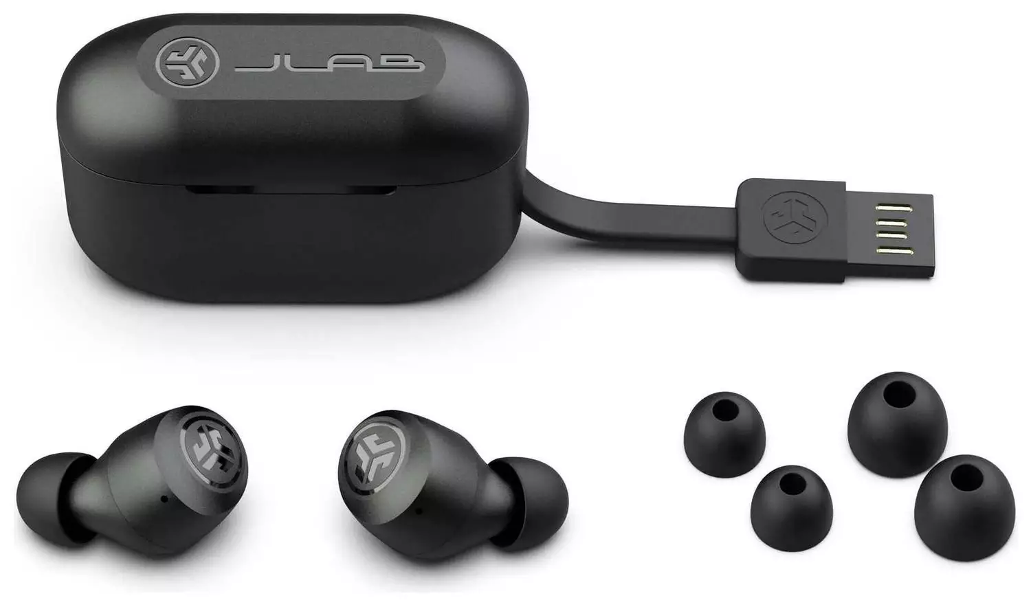 - In the box: GO Air POP True Wireless Earbuds, Charging Case w/ Integrated USB Charging Cable, 3 Sets Gel Tips: Small, Medium, Large.